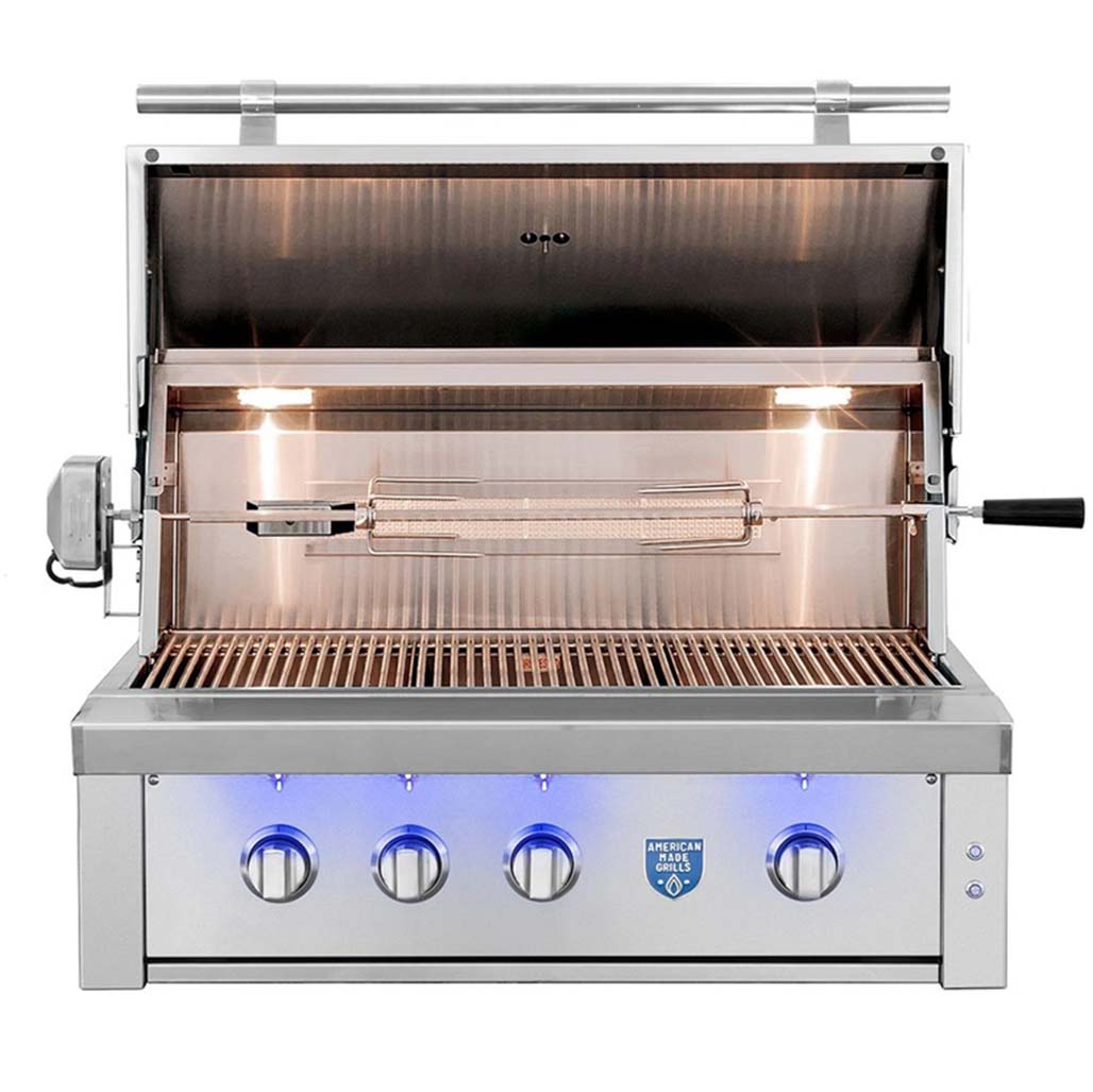 The Estate Grill is a luxury gas grill series that is designed and built entirely in the USA. Every feature—interior and exterior lighting, spring-assisted hood, rotisserie storage, and more—was crafted with precision to meet the highest quality standards. The built-in model allows you to craft the perfect outdoor environment, building it into a custom outdoor kitchen island.
