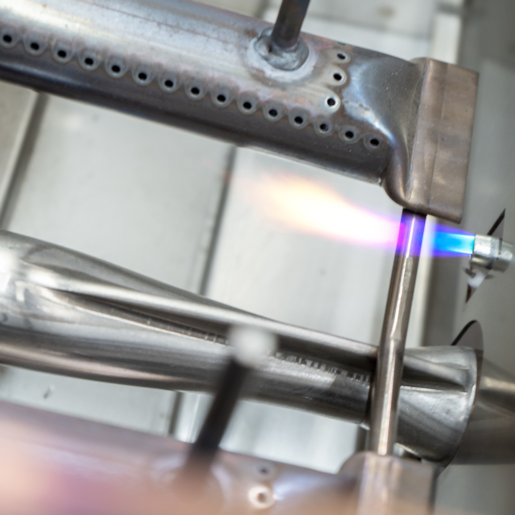 Accessible Control Knobs with Die Cast Alloy Bezels in Gun Metal Finish. Turn the knobs for a piezo ignition that lights every time, eliminating the need for electricity or batteries.