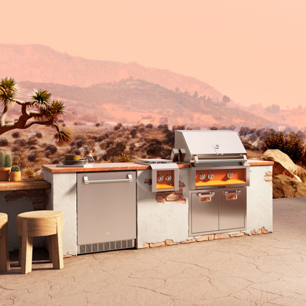 Aspire by Hestan built-in grills deliver exceptional power, masterful performance and heavy-duty resilience into standard enclosures or Aspire grill carts. Assembled in California. Incomparable features include spring-assisted hood, variable infrared searing burner, dual halogen lighting and flip-to-clean ceramic briquettes.