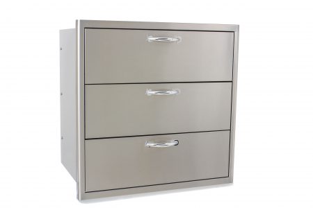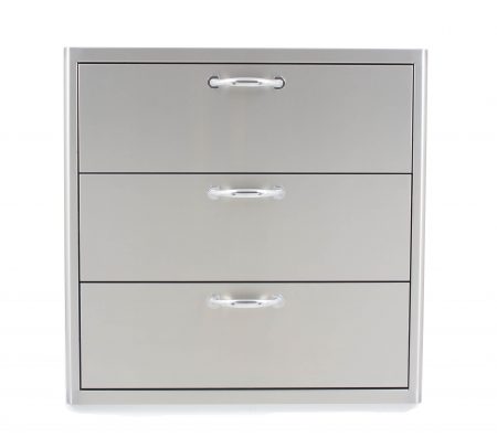 This Blaze Triple Access Drawer feature ambient lighting, clean design elements and quality construction using commercial grade 304 stainless steel that can stand up to the outdoor elements. Accented with modern handles and a unique, completely rounded bevel design, this drawer provides that quality touch to your outdoor kitchen or BBQ island. Blaze storage drawers are the perfect outdoor storage solution!