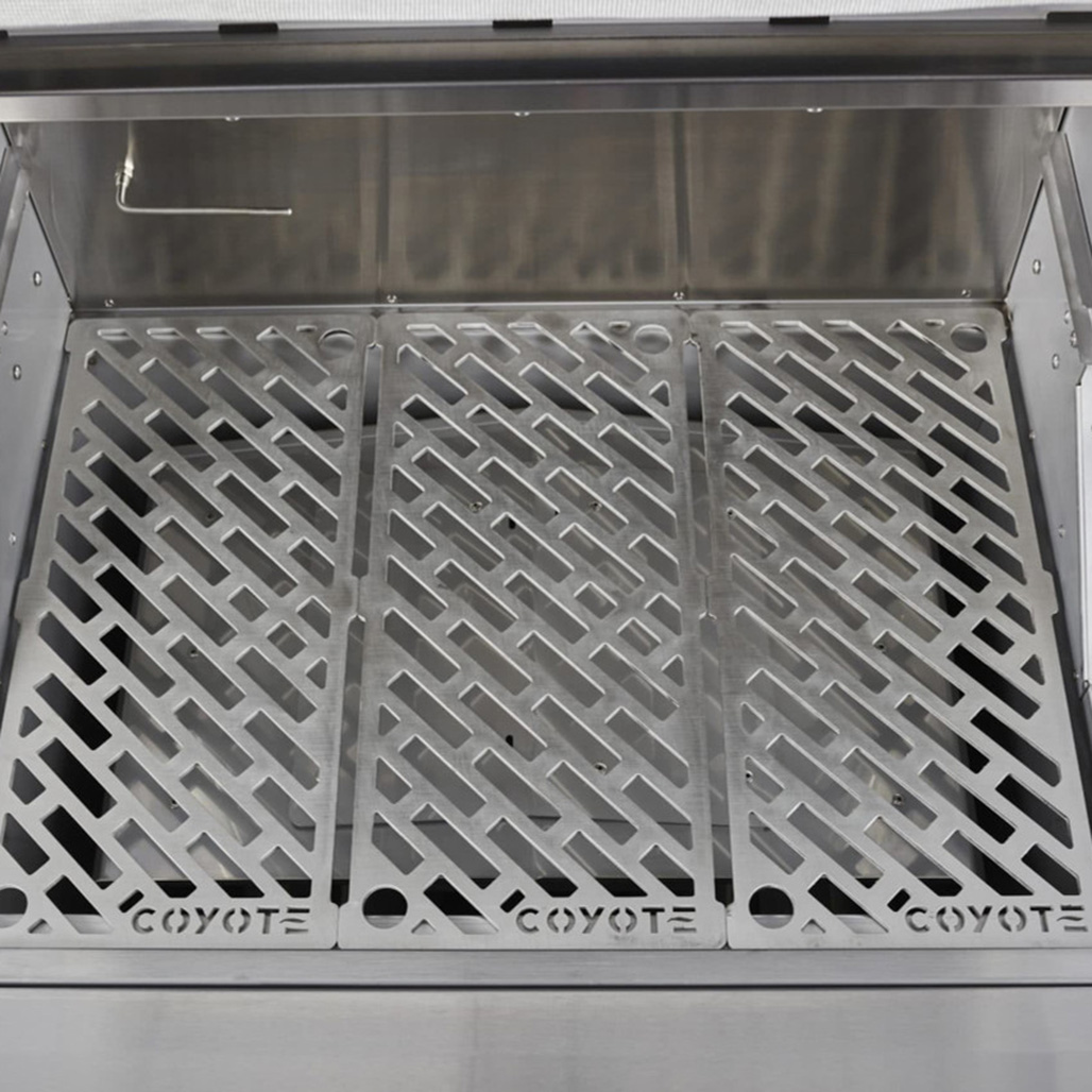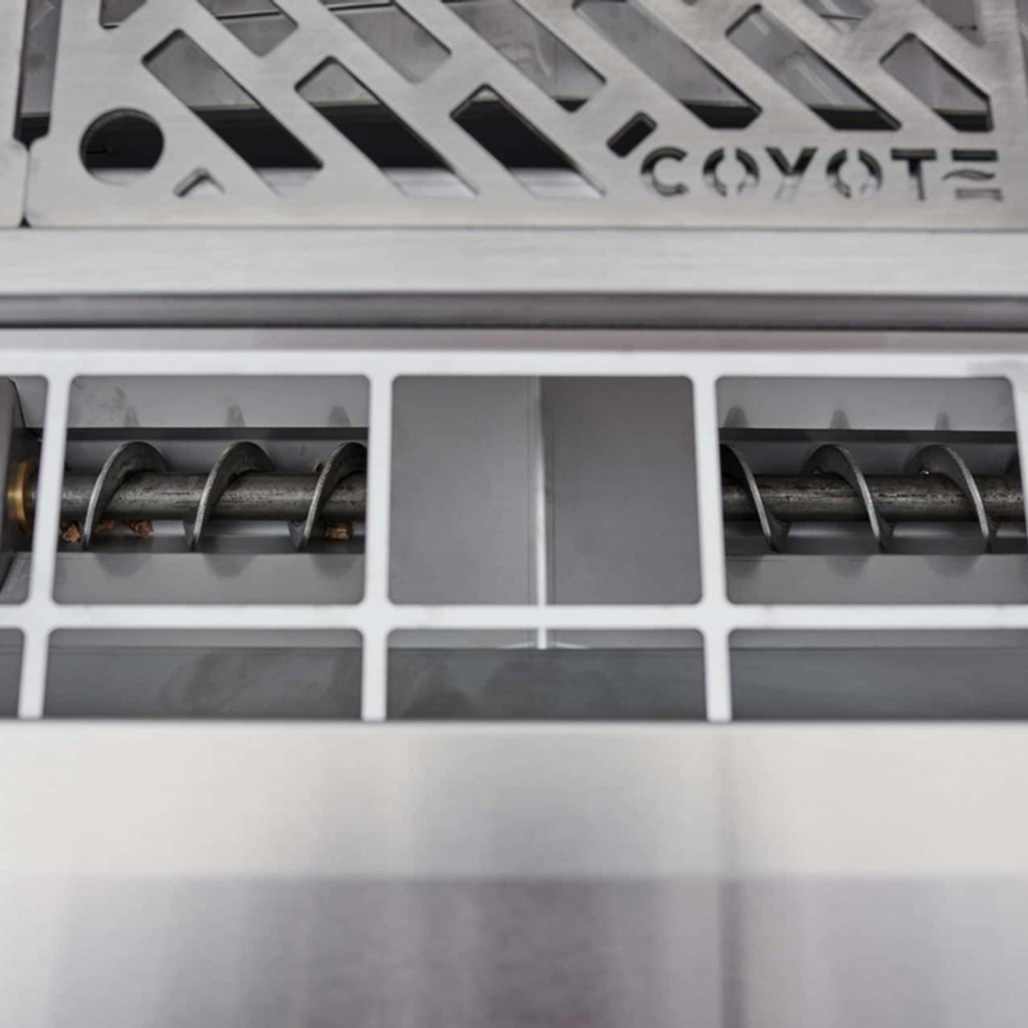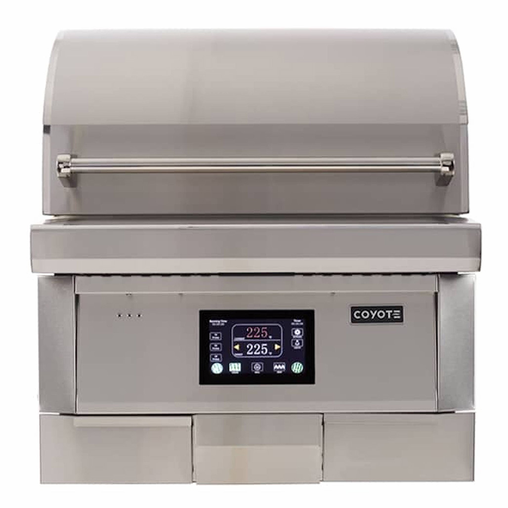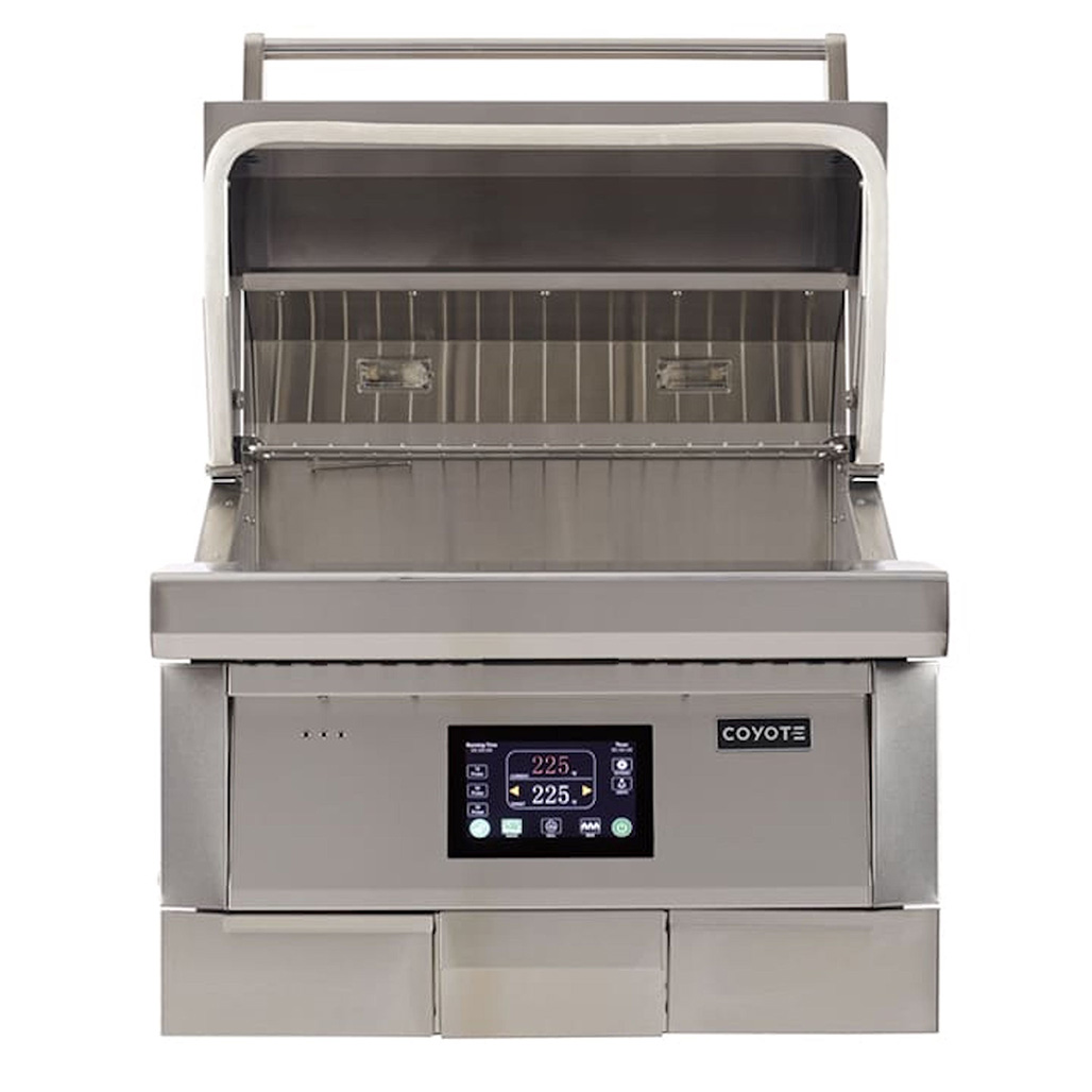 The Coyote Pellet Grill heralds the next generation of outdoor cooking with the look, versatility and superior functionality of a luxury indoor appliance. The state-of-the art digital touch screen, three food temperature probes as well as a range of even heat settings, allows you to utilize this high-end outdoor grill in a similar fashion to an indoor oven. Coyote’s green, smart drop pellet system can be used with any flavored wood pellet to further enhance the outdoor entertaining experience. Design is in the details and this robust grill includes a spring assisted hood that can be lifted with a touch of a finger. The Coyote Pellet Grill is available as a built in or fully assembled on a cart.