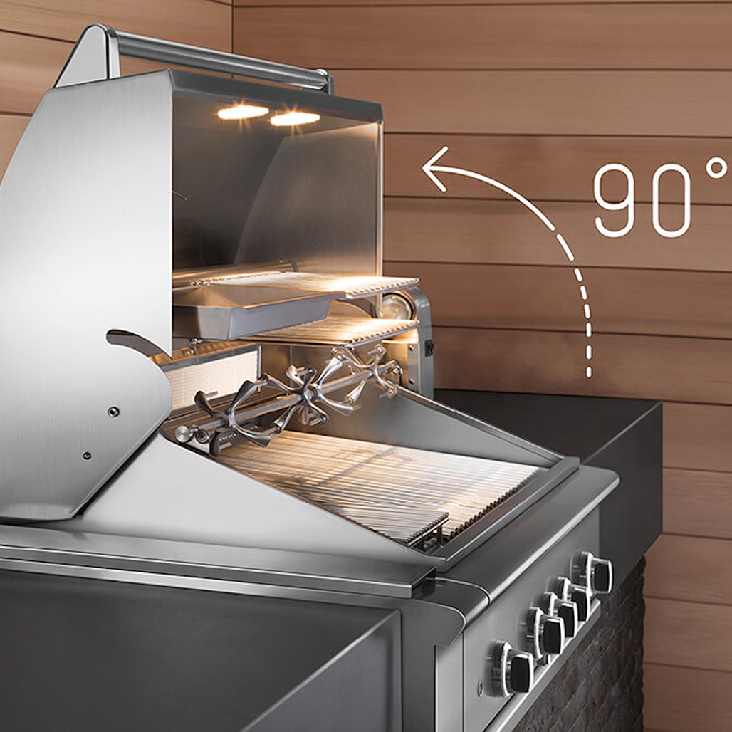 Easy to lift 90° hood for better access when cooking