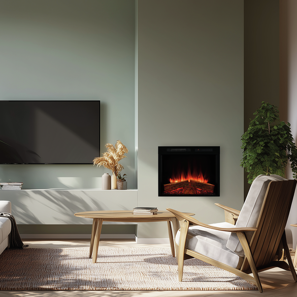 The Spark electric fireplace transforms your traditional fireplace into a modern, stylish feature with realistic Optiflame® effects and glowing log bed. Enjoy 13 flame colors, 7 themes, adjustable brightness, speed, and crackling sounds. Energy-efficient LED lighting and a 2kW heater with thermostat offer comfort. Control via device, remote, or app with sleep timer and 7-day schedule.