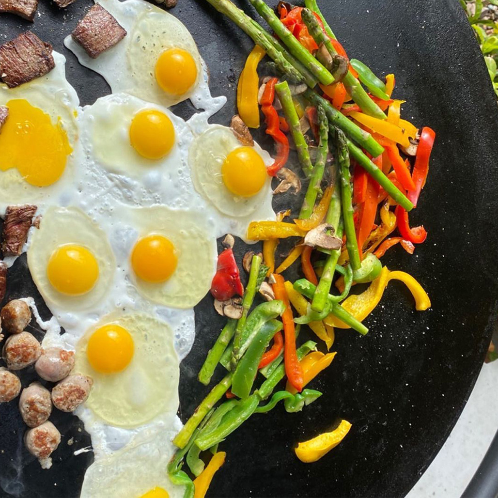 Cooking techniques: sauté, braise, flattop (Plancha) grilling, pan fry, roast, poach, steam, toast