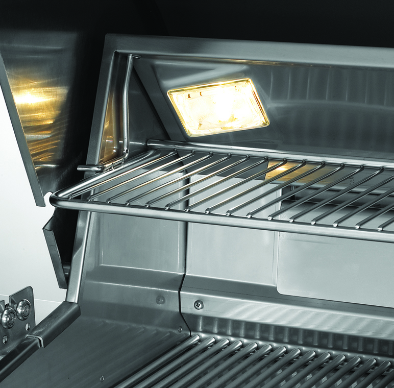 Optional recessed stainless steel rotisserie back burner and heavy duty rotisserie kit