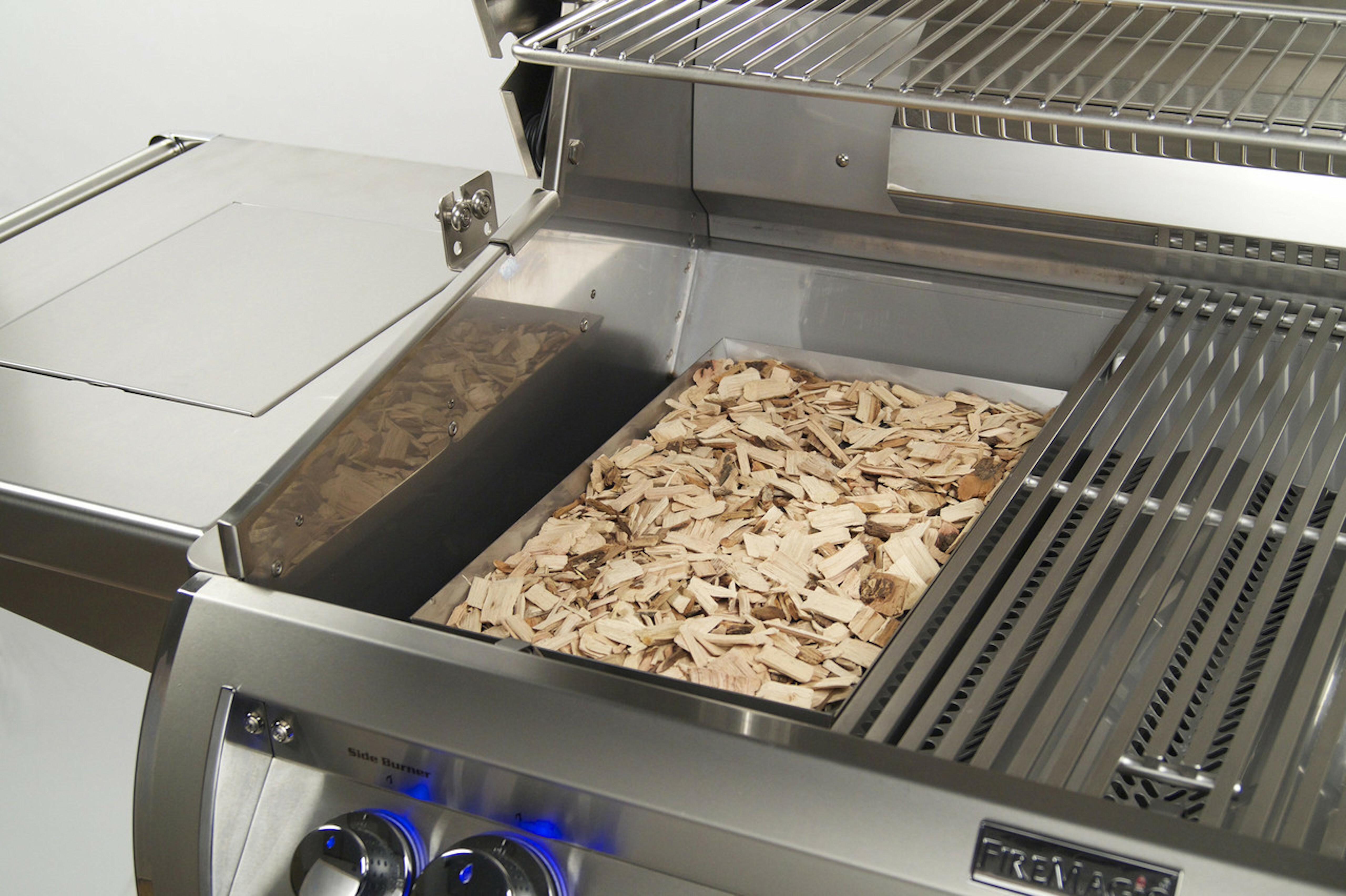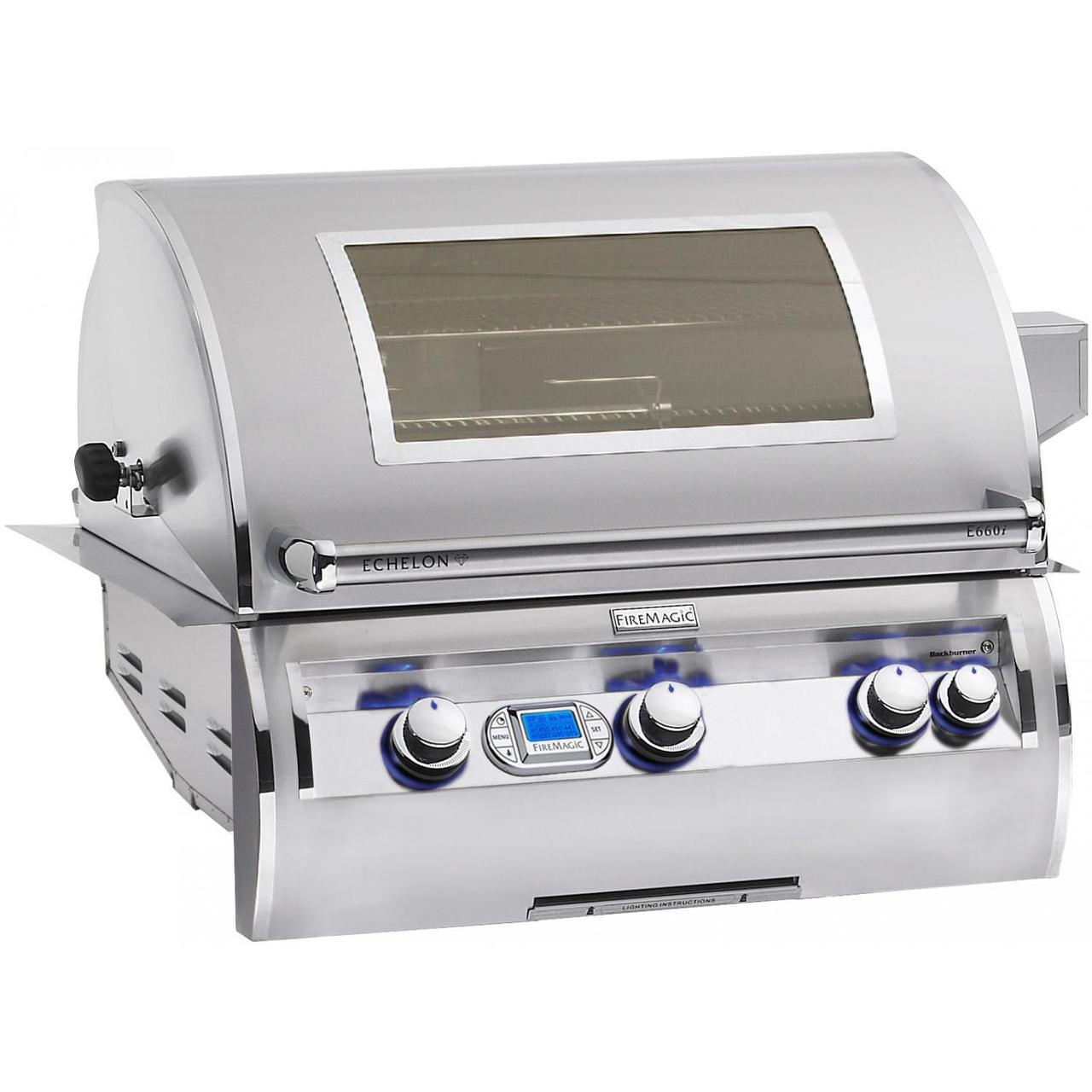 Fire Magic E660i Echelon Diamond Built-In Gas Grill provides the ultimate high end grill that's crafted for cooking versatility, durability and longevity - truly a grill of masterful design and engineering. The complete 304 stainless steel construction is highlighted by cast stainless steel "E" burners capable of up to 26,000 BTU each. Fire Magic's Diamond Sear Cooking Grids provide optimal heat transfer while the 16 gauge stainless steel flavor grids are specially designed to provide even heat distribution preventing hot and cold zones and protect the burners from grease and drippings. The large 660in² grilling surface offers plenty of grilling area while the Quantum rotisserie back burner is rated for 11,000 BTU and includes the heavy duty rotisserie kit for professional style cooking. The double walled, spring assisted grill hood features an ergonomic design with a 12" firebox to offer complete convection cooking that's topped off with a charcoal/smoker basket for more flavor options.