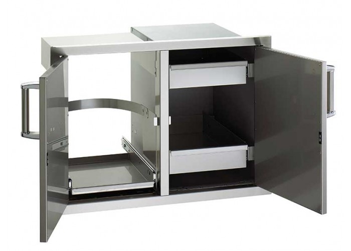 Fire Magic doors and drawers combo have a sleek, contemporary look designed to complement Fire Magic Grills while providing an efficient way to add storage and functionality. Featuring heavy-duty handles with cast stainless steel mounts, these doors and drawers are designed to close flush with the frame with a strong magnetic latch. Filled with polyurethane foam for insulation and a solid feel. The soft close doors prevent slamming and features a smooth transition while opening and closing. They also have a secure closing so drawers are never accidentally left partially open.