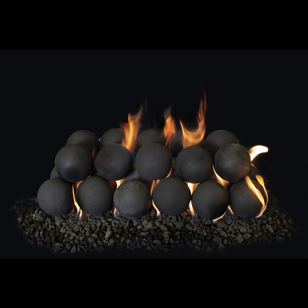 The Cannonball Series features authentic cast pieces in three stunning colors and sizing options that can be styled simply for a minimalist look or mixed and matched to create a custom, contemporary aesthetic. Thoughtfully crafted for your endless viewing pleasure, our Grand Canyon Logs Cannonballs can be nestled in a bed of lava granules surrounded by crushed reflective glass to elevate both indoor and outdoor fireplaces and linear fire pits.