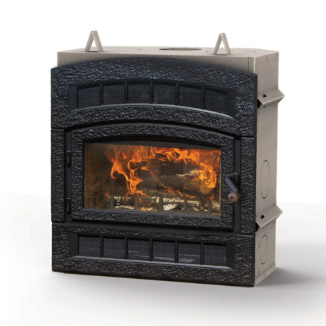 The cast iron front of the WFP75 is designed with a hand chiseled stone texture that offers a uniquely beautiful finish to your fireplace.