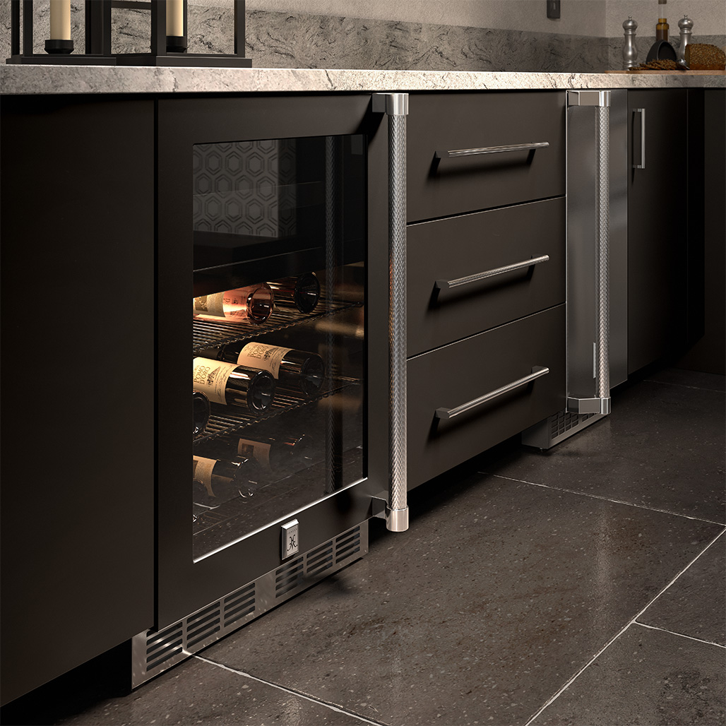 The Hestan undercounter refrigerator offers flexible cold storage for ingredients and refreshments. Heavy-duty insulation and forced-air refrigeration system creates optimum storage. Available in a stainless steel door or glass door to fit your outdoor kitchen needs.