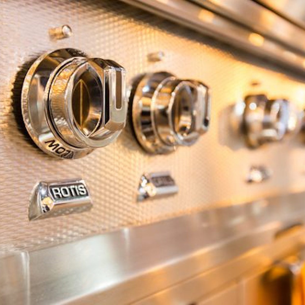Patented Marquise Accented™ control panel and hood handle with commercial-grade end caps.