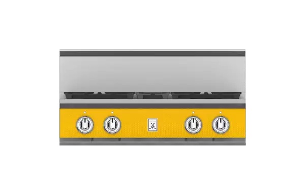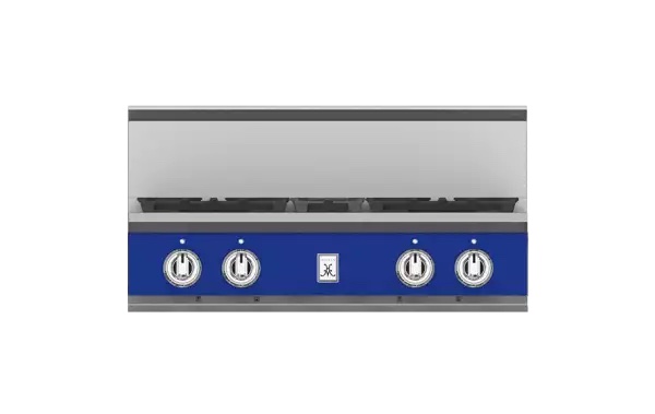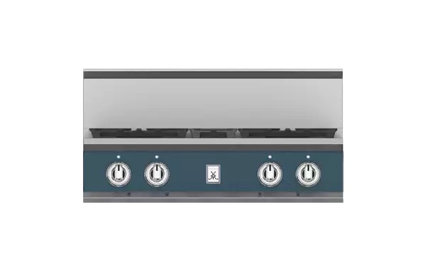 Maximize your cooking area with the Hestan 30” rangetop. This four-burner model brings exceptional culinary power to smaller spaces – not to mention stunning style. The dual-flow burner system allows for a robust range of heat control, from a searing 23,000 BTU flame to a continuous gentle simmer of 500 BTUs. Signature continuous grates allow for easy cookware maneuverability. Backlit knobs bring elegant form to their precision function.
