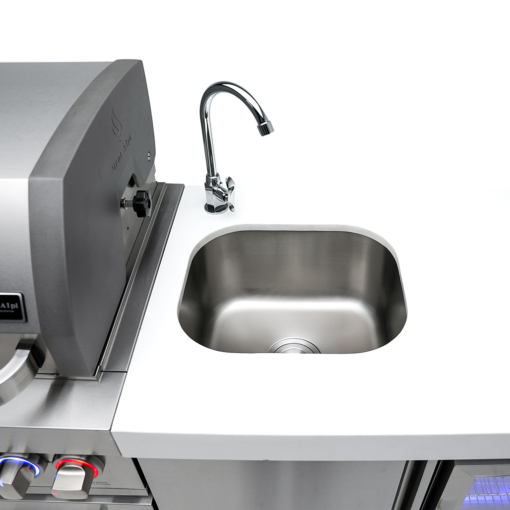 With all 304 Stainless Steel components, waterfall granite sides, and gliding rubber castor wheels with levelling feet, this outdoor kitchen is built to last. It comes propane-ready but can be converted to natural gas in minutes with the additional Mont Alpi Outdoor Kitchen Natural Gas conversion kit.