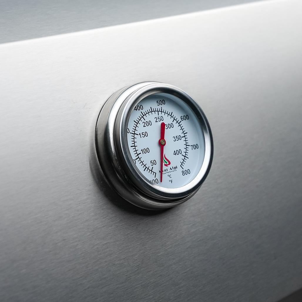 All Mont Alpi Deluxe series outdoor kitchens include a heavy-duty rotisserie kit, granite matching chopping board, and full-size weather cover. And with optional accessories like the charcoal tray and griddle, this grill offers unbeatable versatility.