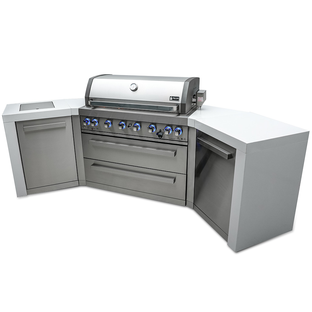 All Mont Alpi Deluxe outdoor kitchens are propane ready but can be easily converted to natural gas with the additional Mont Alpi Natural Gas conversion kit. With its white granite surfaces and waterfall sides, this grill is the perfect combination of class and convenience. Delivered fully assembled, it's the ultimate grill for any outdoor cooking enthusiast.