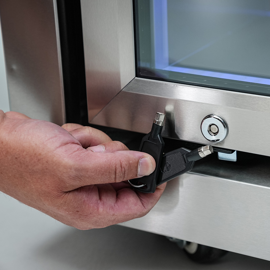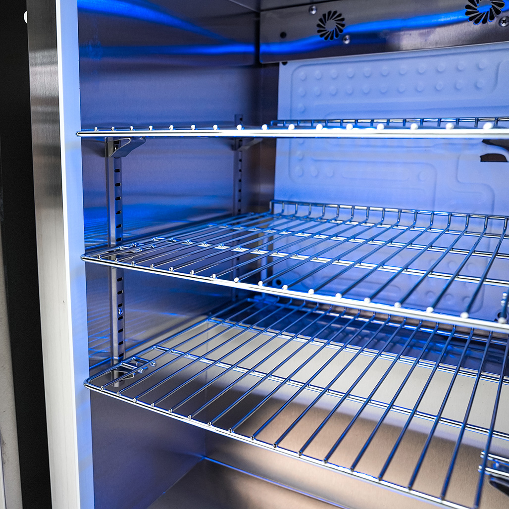 The LED knob lights are blue when off and red when on, providing easy-to-read control, and the bright internal cooking lights ensure perfect vision while grilling. With the Mont Alpi 805 Black Stainless Steel Island with a Fridge Cabinet, you'll have everything you need to take your outdoor cooking game to the next level. So, gather your friends and family and start cooking in style!