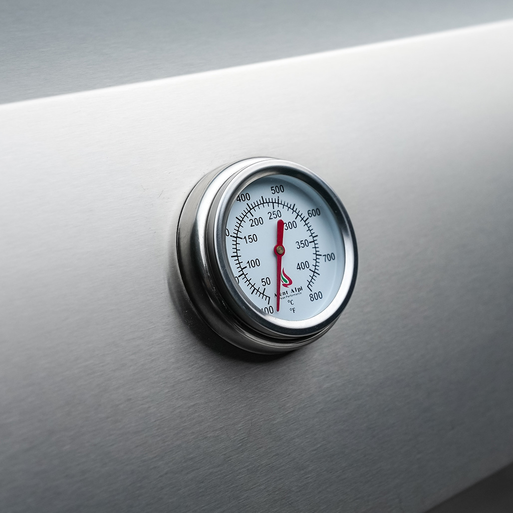 This grill features a waterfall granite design for easy cleaning and a touch of class. The LED knob lights change from blue to red, while the bright internal cooking lights offer perfect vision and precision control. The heavy-duty rotisserie kit, full-size weather cover, and granite matching chopping board make it a complete package.