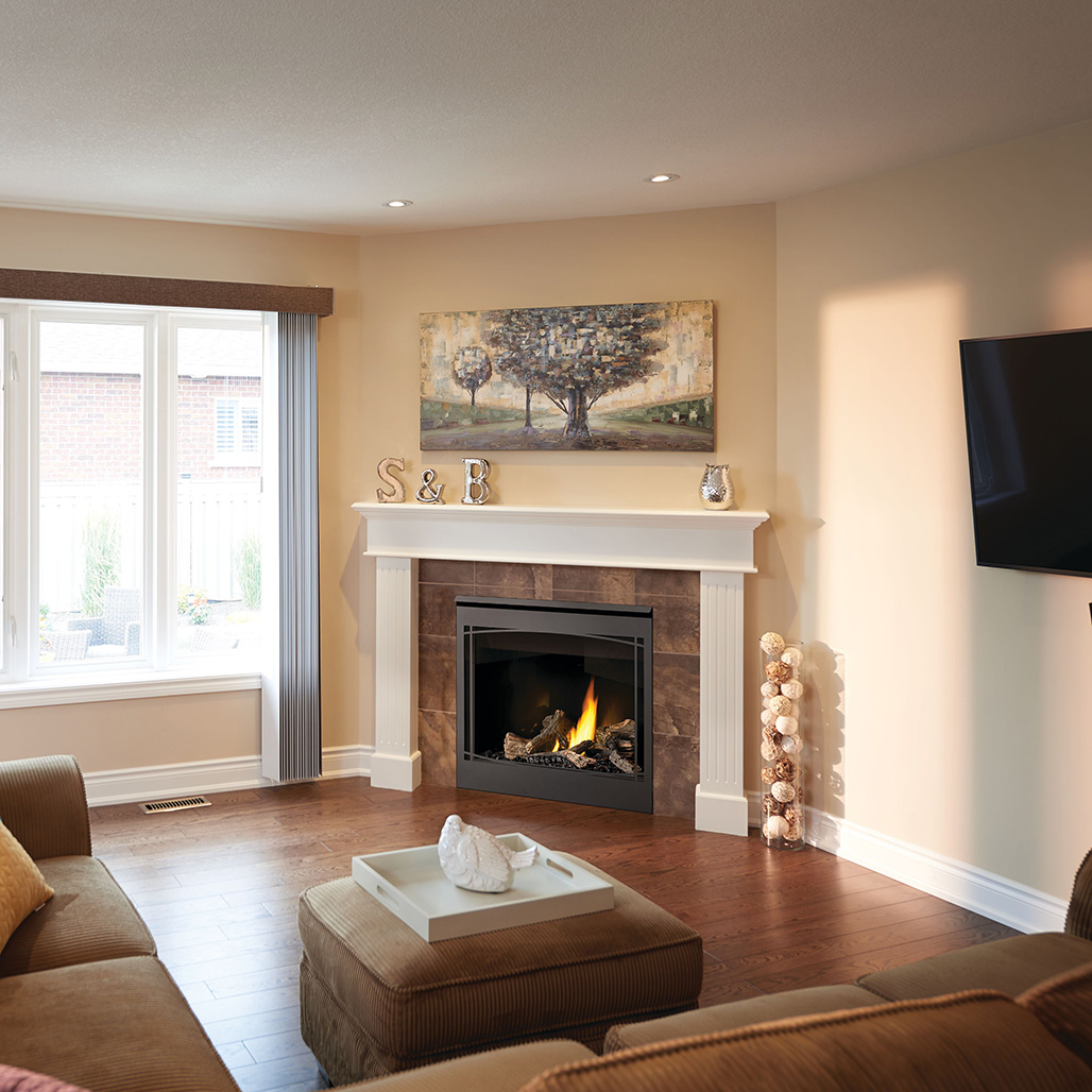 The New and Improved Ascent™ 36 is perfect for builders and homeowners who are looking for versatile installation options. When space is at a premium, the Ascent™ 36 is ideal for corner applications while presenting the largest viewing area of its class. With an improved log set and burner, Napoleon’s Ascent™ 36 Direct Vent Gas Fireplace is sure to provide the most charming atmosphere for any room.