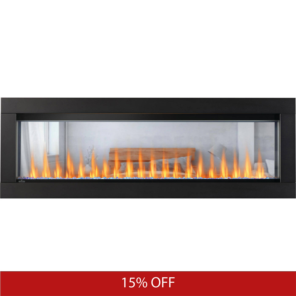 The CLEARion™ Elite 60 See Thru Electric Fireplace is the first-ever truly see-through electric fireplace. A CLEARion™ Elite Electric Fireplace is hardwired directly into your electrical system, creating a built-in, seamless, relaxing environment in two rooms. This unique fireplace can heat separate rooms at different rates, increasing the comfort of two spaces at the same tim,e conveniently controlled with two remotes. A privacy mode allows you to change the transparency when privacy is desired. Customize this Napoleon Fireplace with either a sparkling crystal media ember bed or the hand-painted logs with Topaz glass embers; both sets are included. Illuminated from below by LED, color-changing lights, both ember bed styles glow with a luxurious feel that can be seen from two rooms.