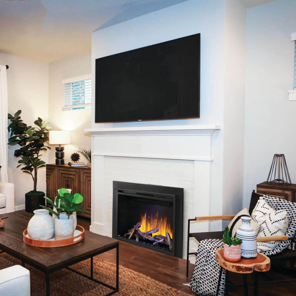 This self-trimming electric fireplace is a builder special and a tradesman’s dream. With the highest heat output and best-looking flame in its category, the dual voltage options allow a plug-and-play or hardwire installation with 120/240V. The Element™ 42 Electric Fireplace is an easy to use electric fireplace unit that can simply be plugged in and turned on. Enjoy a seamless look by installing into an existing fireplace opening or placing into a mantel set. The traditinal log styling evokes a rustic wood fire feeling that is enjoyable year round with or without heat. Easily heat large spaces while enjoying the look of a realistic fire in any room you could imagine, and is ideal for any setting, home, condo, office, or apartment.