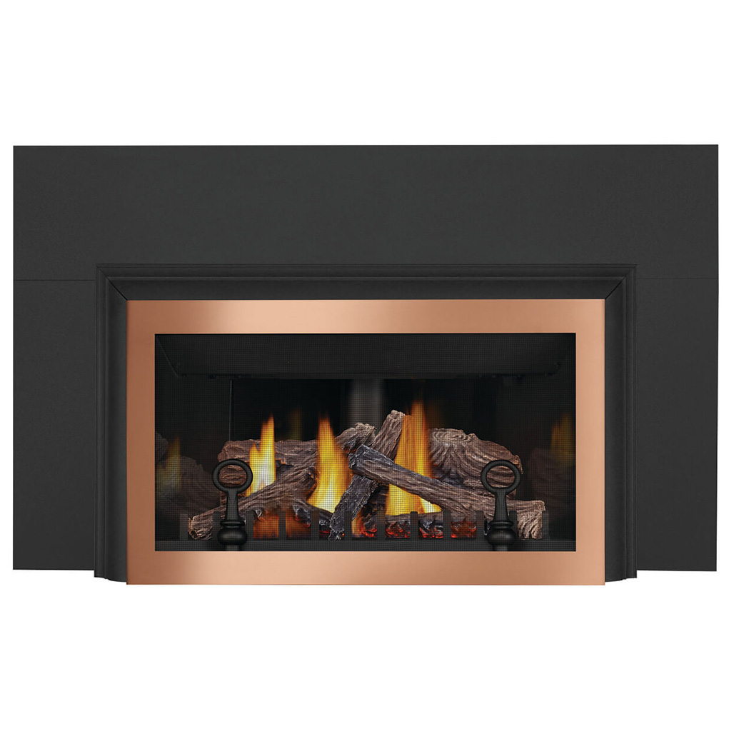 The Napoleon Inspiration™ ZC Gas Fireplace Insert produces beautiful, realistic YELLOW DANCING FLAMES® and the exclusive PHAZER® log set and charcoal ember bed are so realistic, they will be mistaken for a real wood fire. The blower comes standard with this unit to ensure efficient heating of any room. Designed to fit into the smallest insert openings, the Inspiration™ ZC features an impressive viewing area. A multitude of screens, fronts, trims, and surrounds ensure that this fireplace insert will meet your decor needs as well as creating a delightful and warm focal point. This Vesta award winning fireplace insert is the perfect gas fireplace insert for any room in your home.