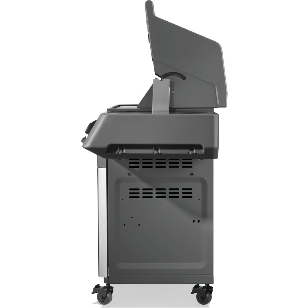 The stainless steel Prestige 665 Connected, Propane Gas Grill with Infrared Side and Rear Burner is a dynamic evolution in grilling, featuring Wi-Fi and Bluetooth connectivity that brings you closer to your grilling experience than ever before. Monitor temperatures, set timers, get cook assistance, and receive high-temperature warnings—all from your smartphone. With included temperature probes and an integrated LCD display, you'll always know exactly what's happening inside your grill. A larger rotisserie burner and infrared sear station, side burner provide enhanced performance. LED Control Knobs illuminate for nighttime entertaining and feature SafetyGlow™, glowing red for added safety when the gas is on. The stow-away warming rack keeps things tidy, and hidden tool hooks provide extra prep space. Enjoy new ways to experience connected living and unique cooking methods with the compelling Prestige 665 Connected Gas Grill.