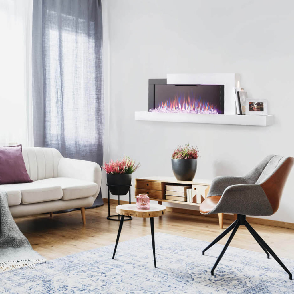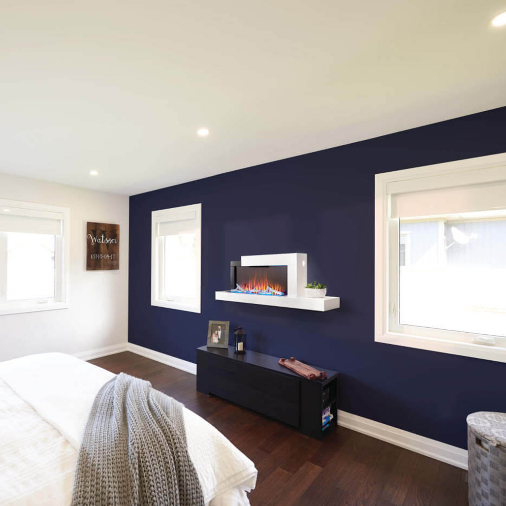 The modern, minimalist style of the Stylus electric fireplace will add a contemporary feel to any space with its clean graphical lines and monochromatic Color scheme