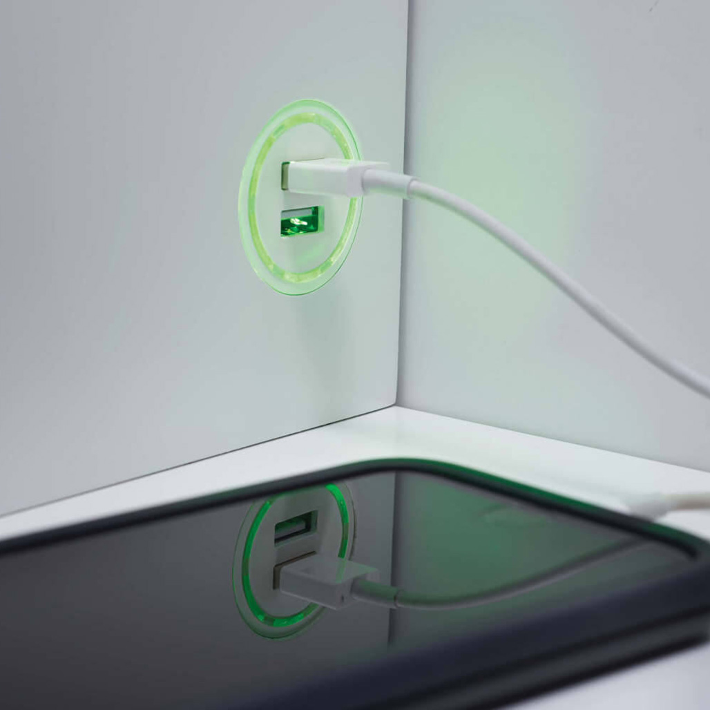 Ensure your favourite devices are primed and ready for you with the integrated USB 2.0 charging ports that have status indicator lights