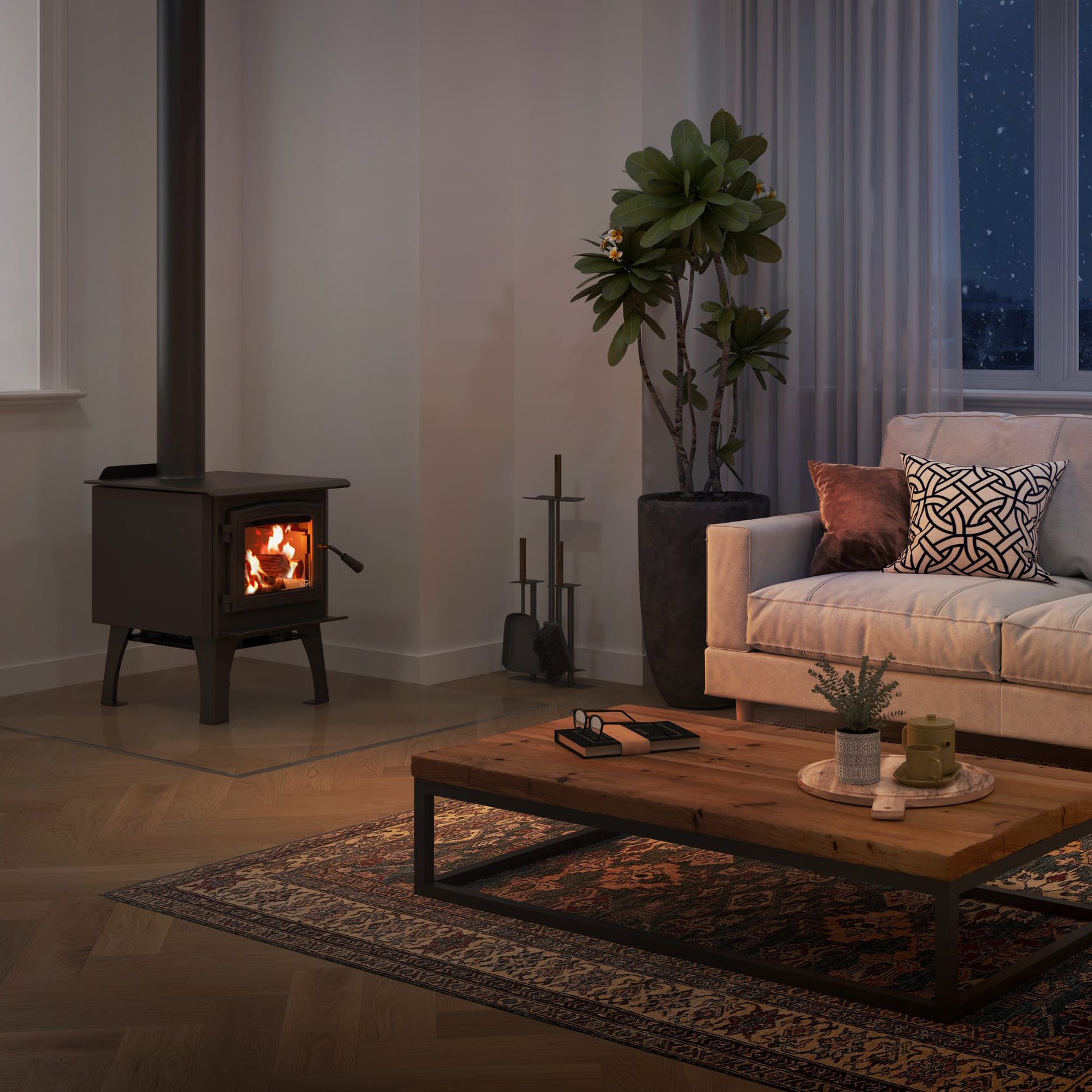 The Osburn 950 wood stove might be small but don’t let the size of this wood burning stove fool you. Producing up to 45,000 BTU’s per hour, this heater has all the same features and technology of the larger Osburn wood stoves. The Osburn 950 wood stove is compact but still emits enough heat to keep you warm on those cold winter nights.
