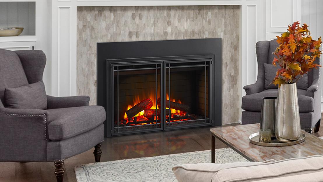 Convert a drafty, dated fireplace into an eco-friendly, efficient source of warmth with an electric fireplace insert. The electric insert fits directly into a wood fireplace opening with a surround kit or any framed opening with the self-trimming design. Simplifire Electric Fireplace Available in 25-inch, 30-inch, and 35-inch insert widths.