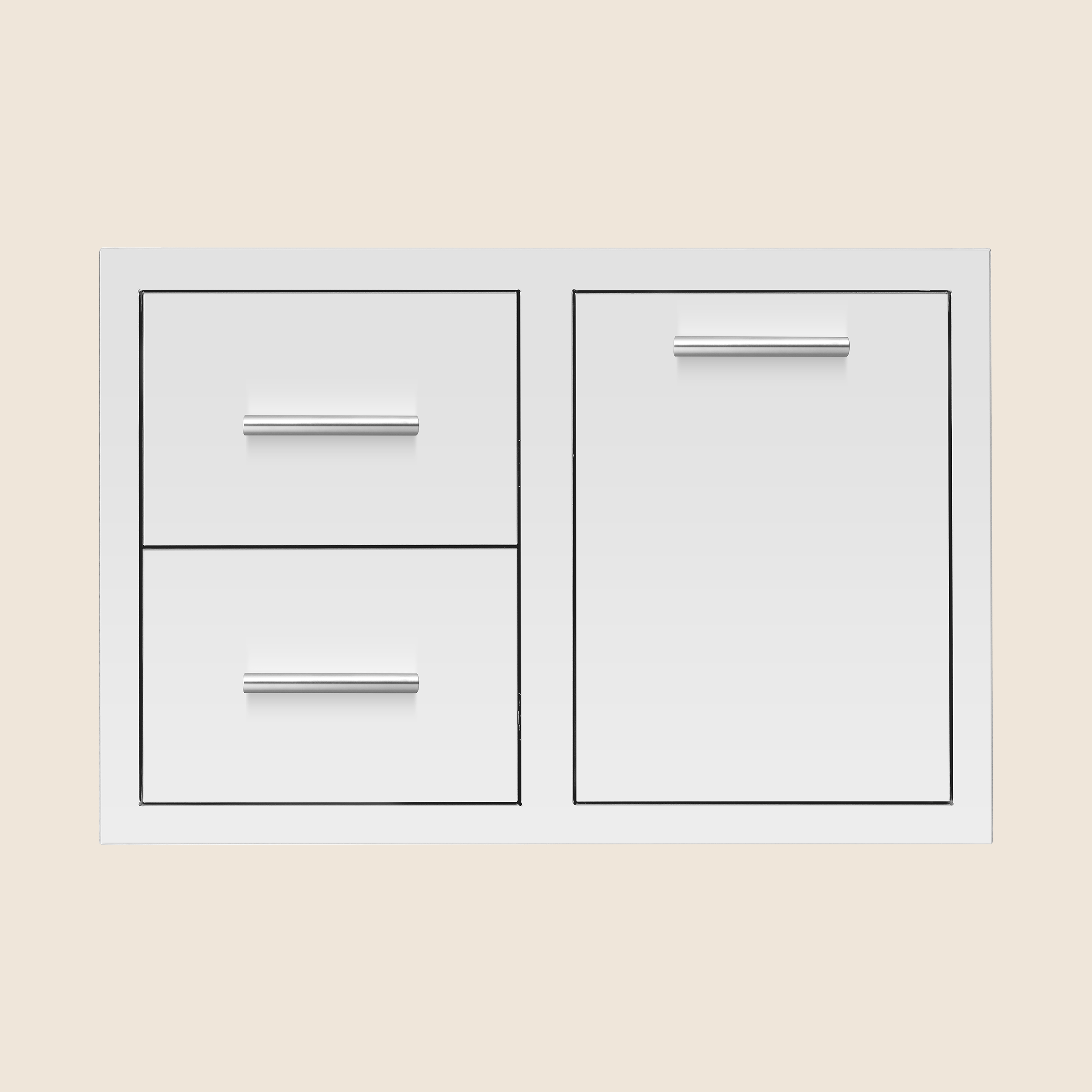 Maximize storage and accessibility with the Summerset 33″ 2-Drawer & Trash or LP Tank Pullout Drawer Combo. This versatile combo unit features 2 Storage Drawers and a Trash or Liquid Propane Tank Pullout Drawer, all crafted from #304 Stainless Steel with a Hingeless Design, Soft-Close Tracks, and Summerset bar handles. Fully enclosed for durability, it’s backed by a Gold Standard Lifetime Warranty.
