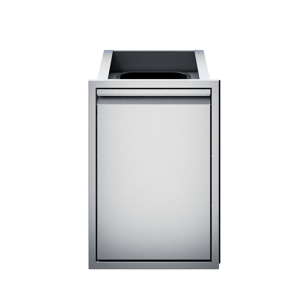 The 18" trash drawer holds one or two larger capacity trash containers and has a full pullout drawer for easy access. Use one of the included containers for waste and the other for recycling.
