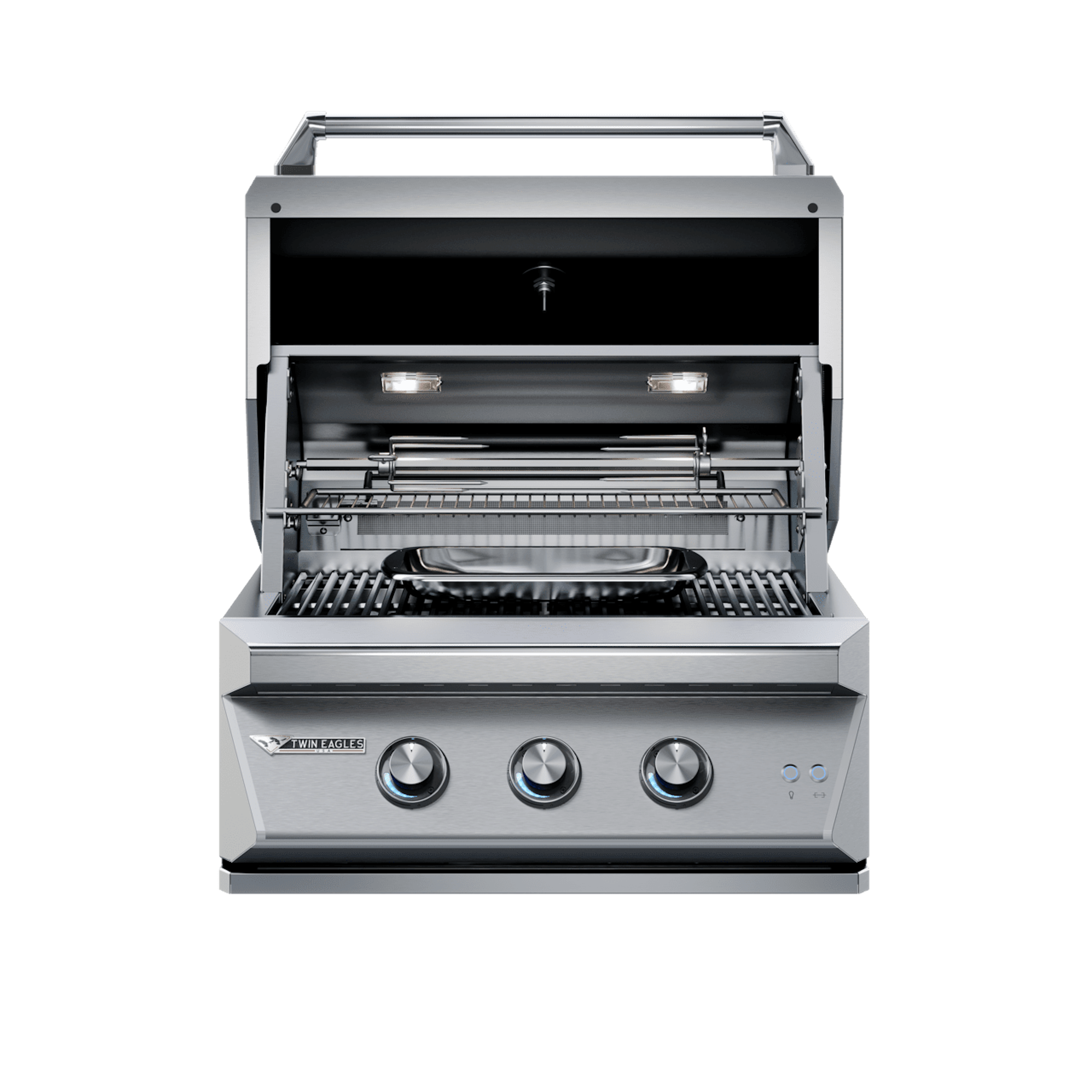 Indigo blue control knob indicators provide easy burner monitoring, even in low light, making nighttime grilling effortless and preciseINTEGRATED ROTISSERIE SYSTEMConcealed rotisserie motor with 100lb capacity, multi-position spit rod, and infrared burner. The spit rod is conveniently stored in a slide-out tray beneath the grill for easy accessHOT SURFACE IGNITIONGetting started is quick and easy with the ultra reliable hot surface igniter. Just push in the burner or rotisseries control knob