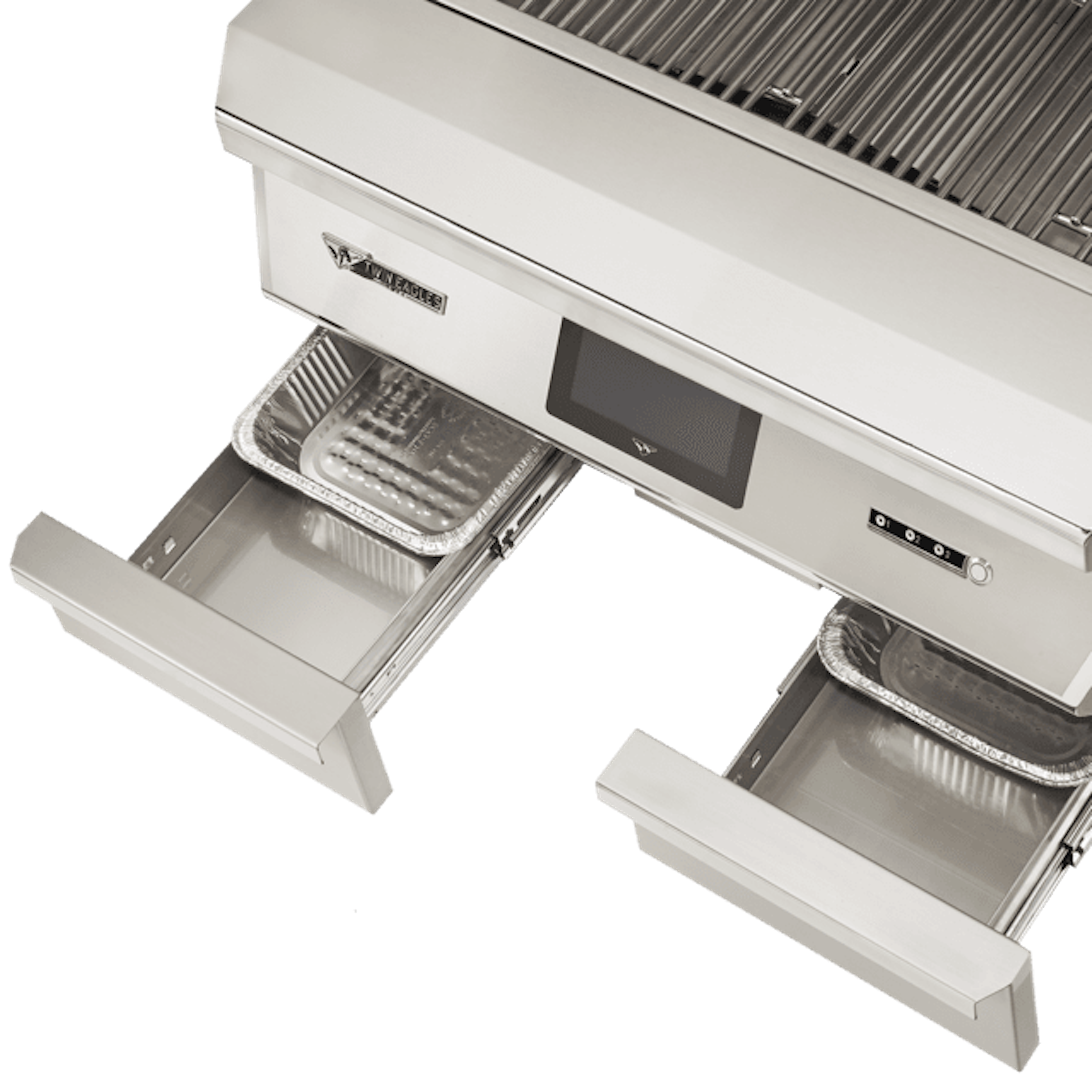 Versatile drop-in inserts designed to enhance your grilling: a 16-gauge stainless steel vaporizer plate for indirect heat, a sear plate for direct and radiant heat using ceramic briquettes, or a charcoal tray for live fire cooking.